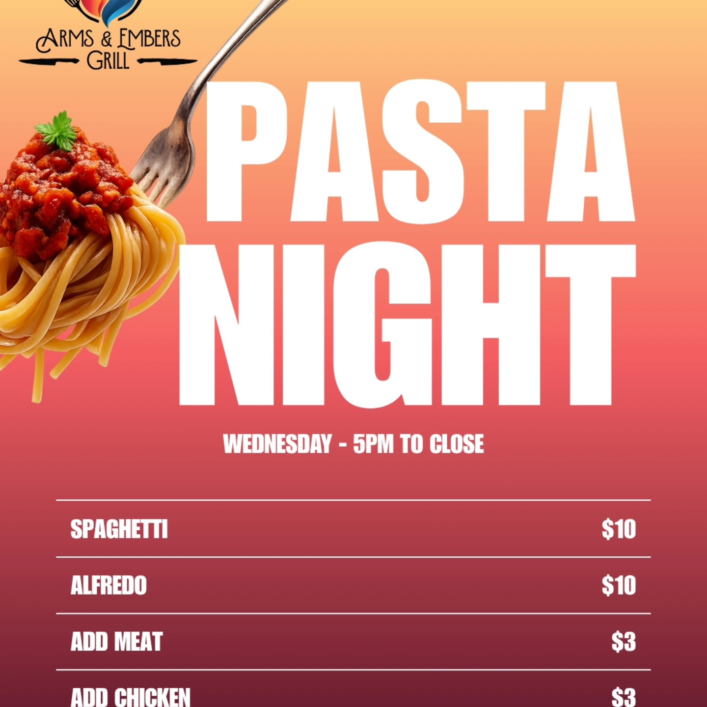 The name came from two ideas: arms, because this place was meant to welcome people in, and embers, because every great meal starts with fire — not just heat, but passion. Together, they became a symbol: hospitality that burns bright.